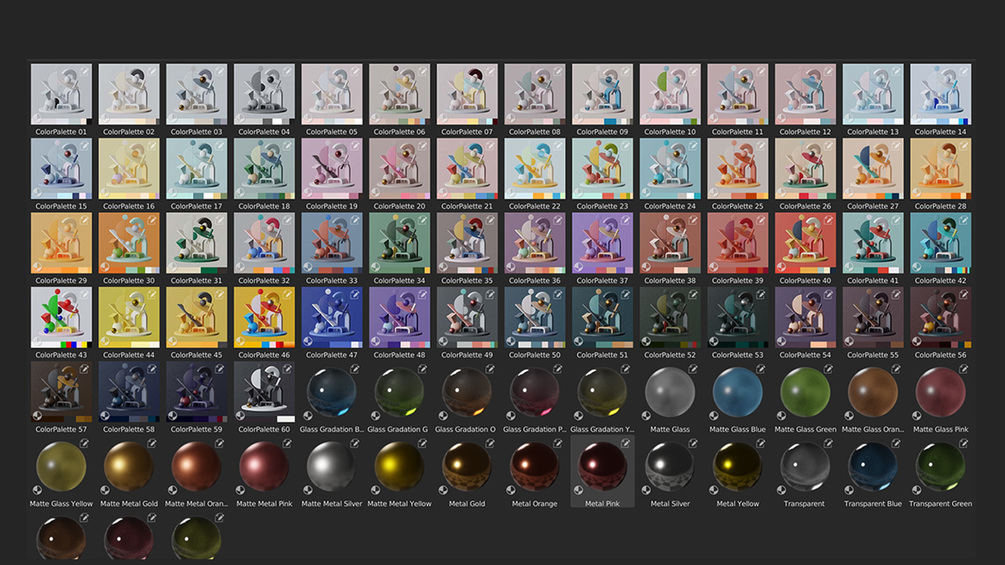 プロシージャルなマテリアルパレットで、あなたの作品に最適なカラーバランスを与えます。