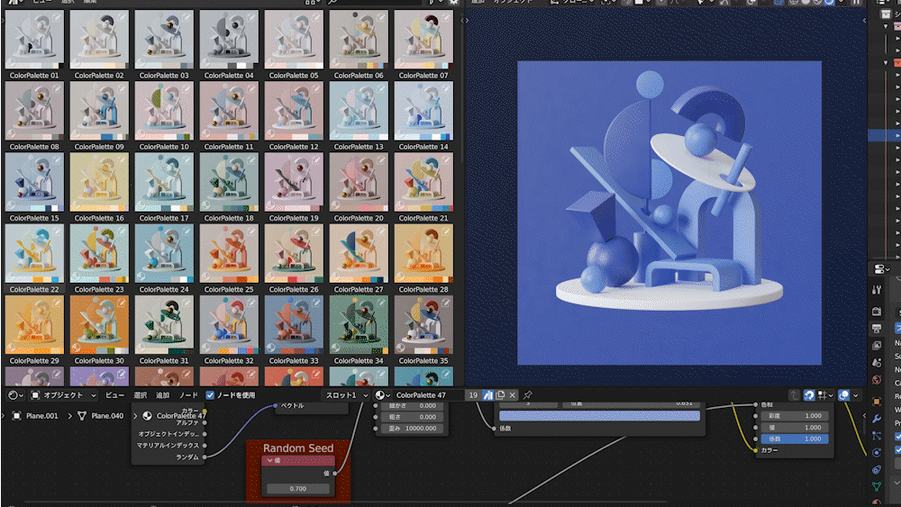 ノードで数値を変化させることで、無限のカラーバリエーションを生み出すことができます